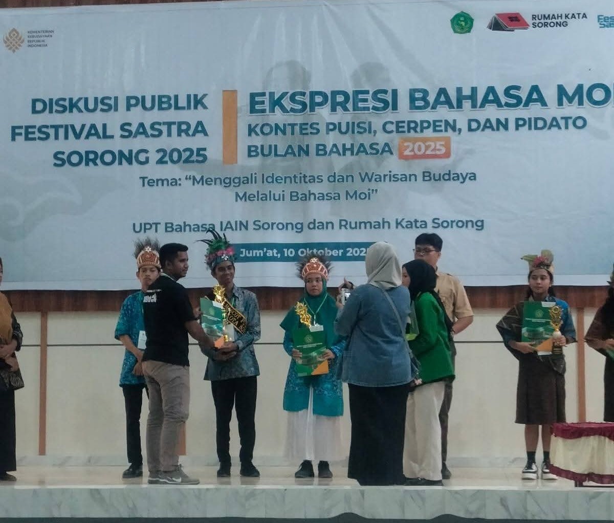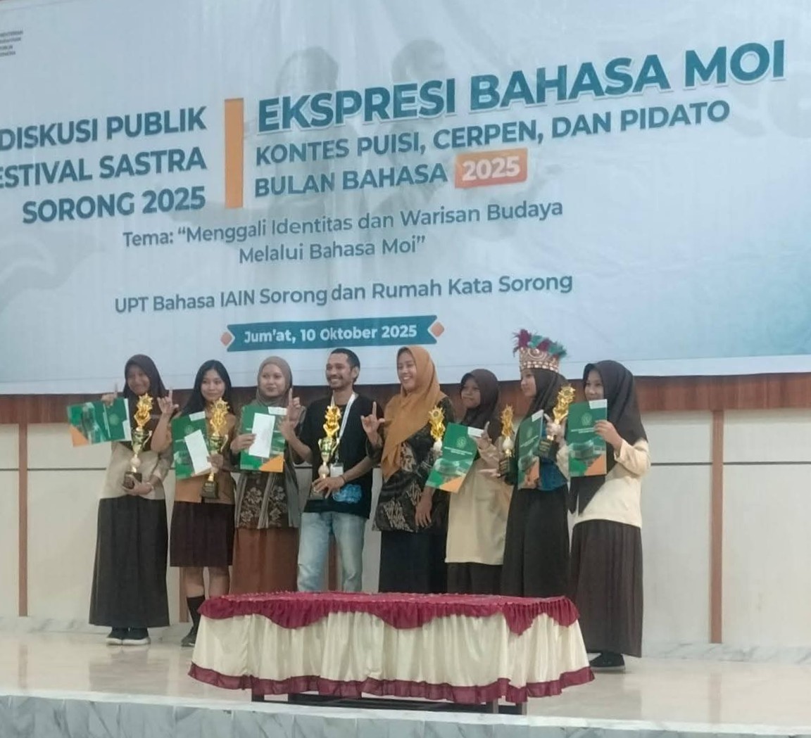 SORONG, 13 Oktober 2025 – Siswa-siswi Madrasah Aliyah Negeri (MAN) Kota Sorong kembali menorehkan prestasi gemilang dengan mendominasi ajang Lomba Bulan Bahasa IAIN Sorong Tahun 2025. Keberhasilan ini menjadi bukti nyata bahwa generasi madrasah memiliki kecerdasan intelektual, kekayaan budaya, dan kekuatan akhlak yang sejalan.